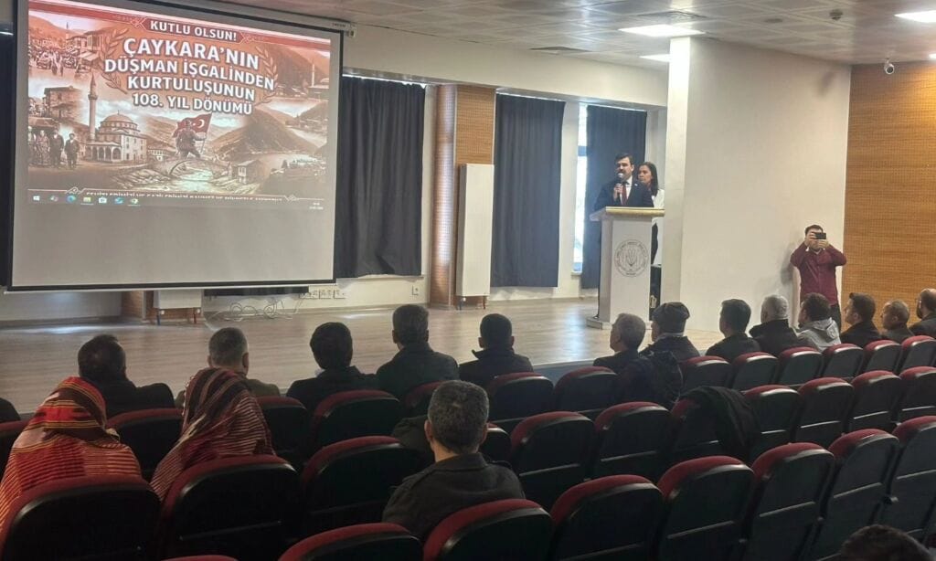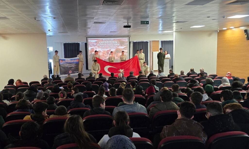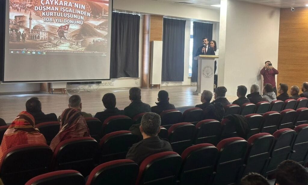 27 Şubat 2026 Cuma günü gerçekleştirilen anma programı, Çaykara Kaymakamlığı önünde çelenk sunumuyla başladı. Saygı duruşu ve İstiklal Marşı’nın okunmasının ardından program, olumsuz hava şartları nedeniyle Çaykara Şehit Ahmet Çamur Anadolu İmam Hatip Lisesi konferans salonunda devam etti.